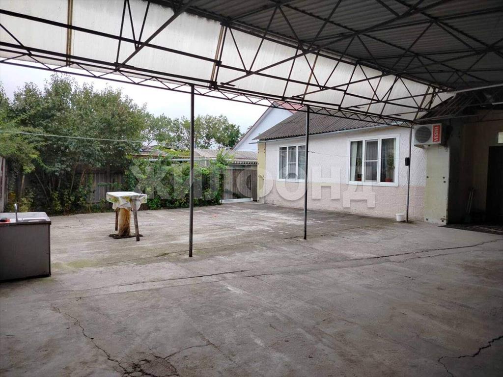 Бетонированный двор, большой навес из металлопрофиля.